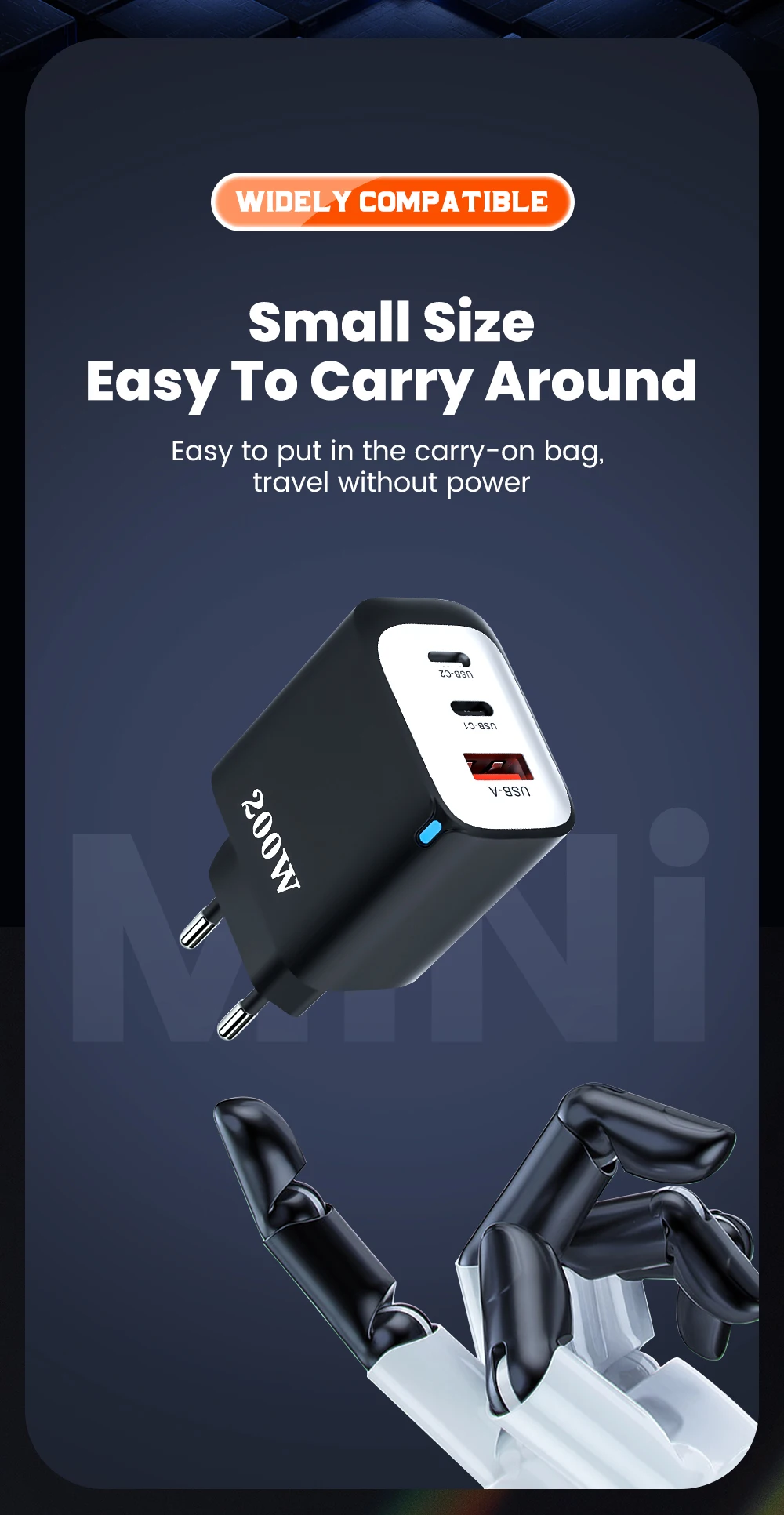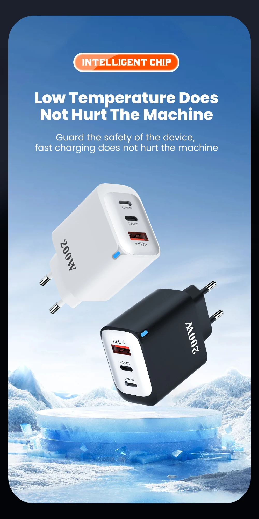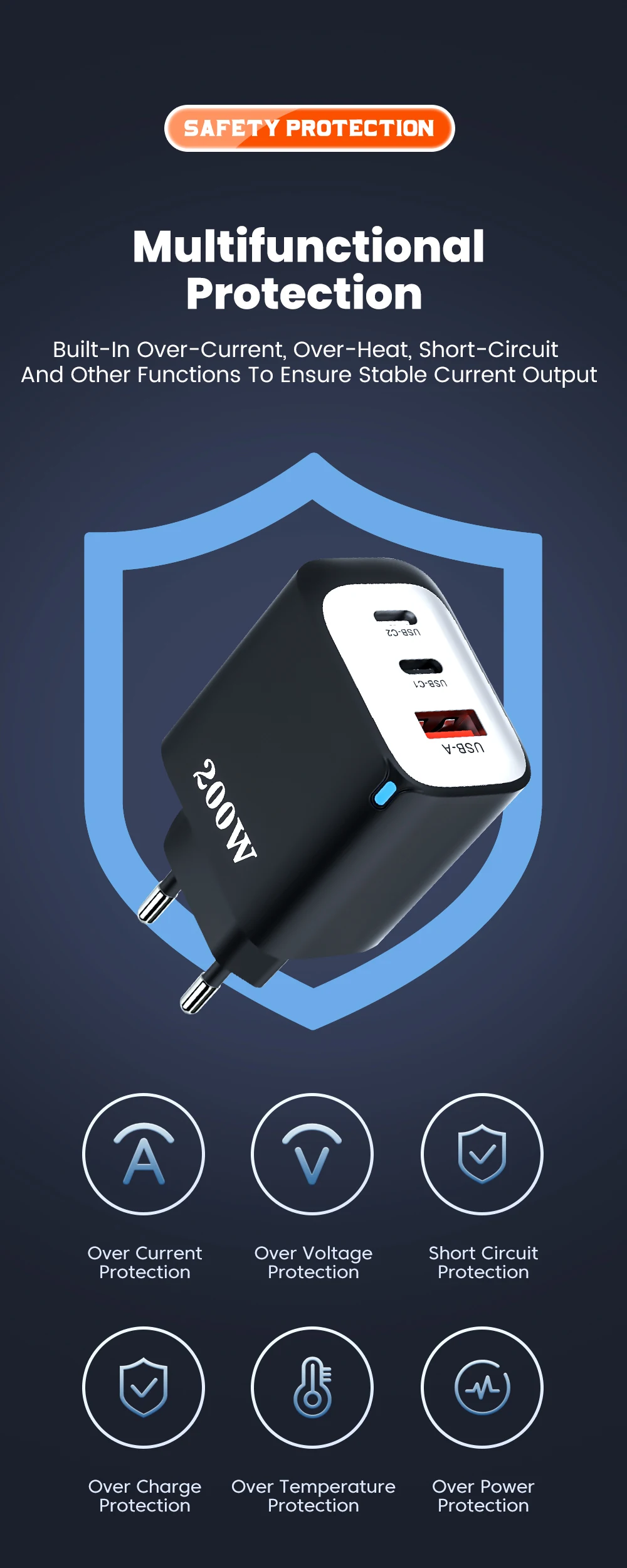 Experience Lightning Fast Charging with the Total PD200W USB Super Fast Charge 3-Port Charger - Perfect for iPhone, Xiaomi, and Samsung!