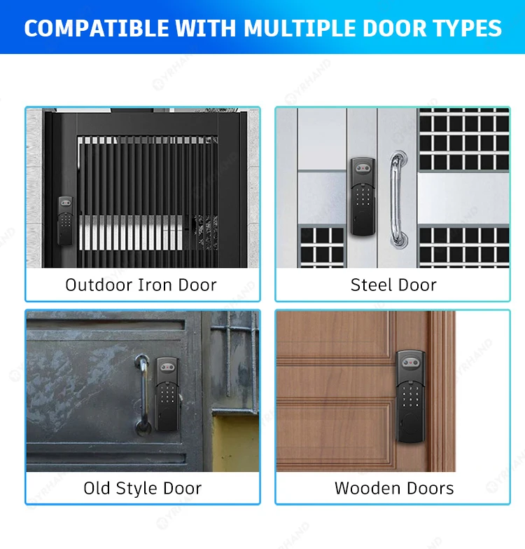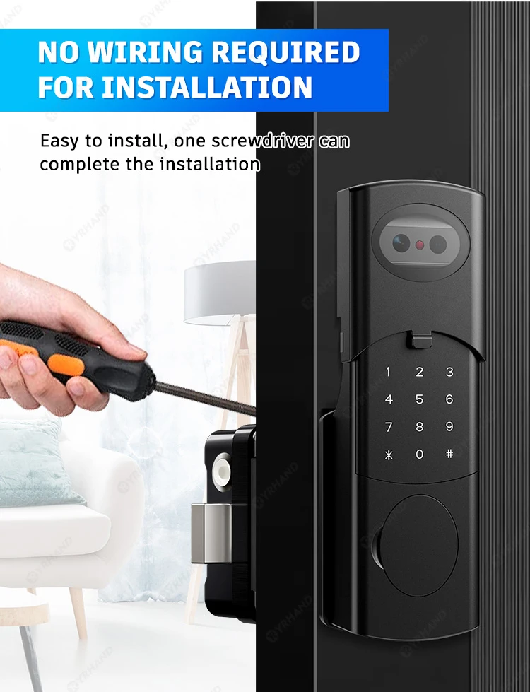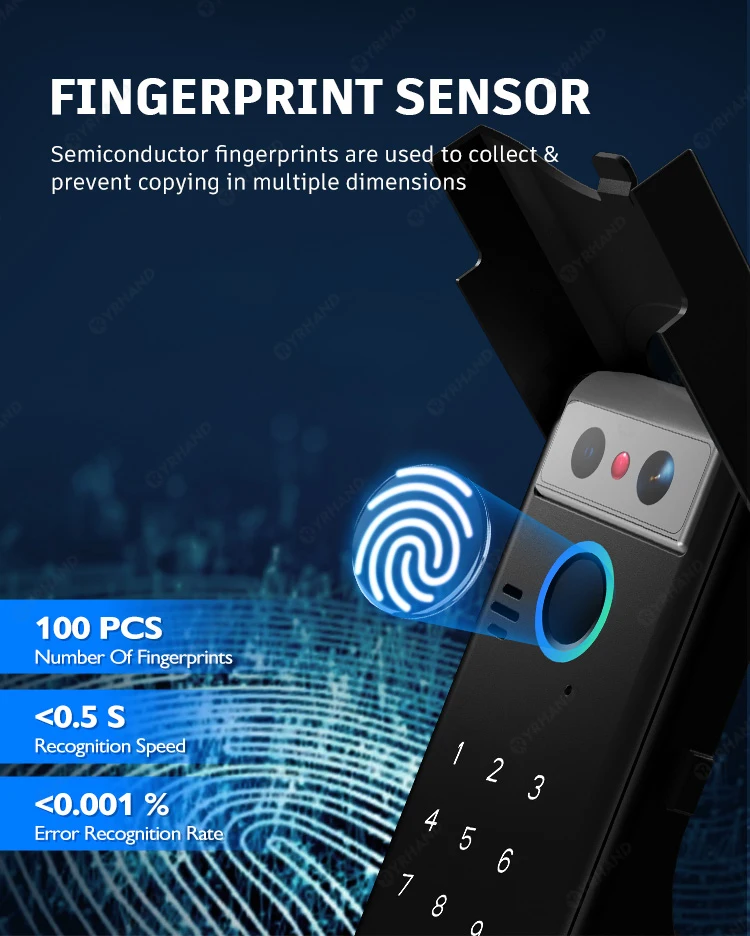 Unlock modes: Face Recognition(V8)/ Fingerprint /Password /RFID Card / APP/ Mechanical Key