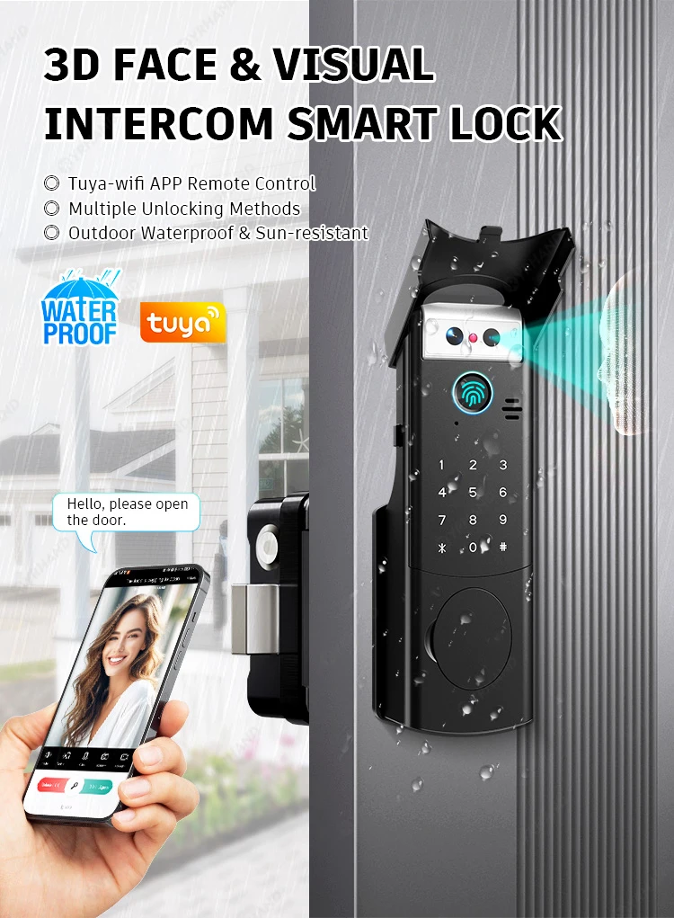 Revolutionary Tuya WiFi 3D Face Recognition Smart Lock - Waterproof, Multi-Access Security for Your Home